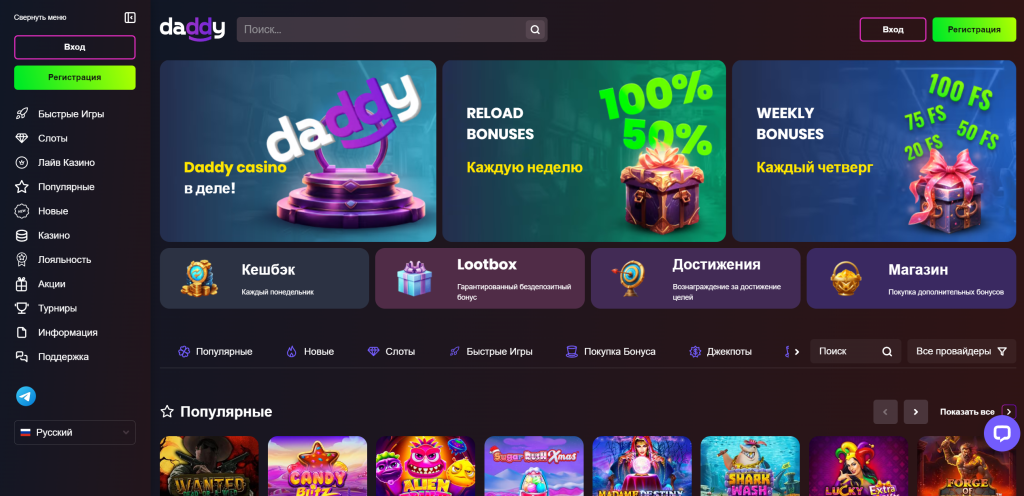 Топовые игровые автоматы от известных провайдеров в Daddy Casino